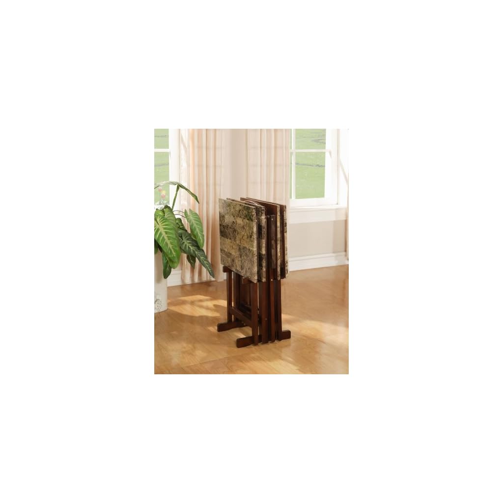 Linon Home Decor Tray Table Set Faux Marble Brown. Designed for style and quality, it includes four foldable wood tables with faux marble decorative tops. Faux marble paper decorated tabletops. Ehemco set of 2 folding tv trays tv tables 8. Tray table set faux marble in brown. Linon home decor tray table set, faux marble, brown.